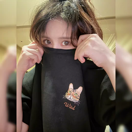 【喜瑞斯】chenyifaer官方T恤 猫咪绣花 中性百搭高级质感